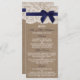 A design apresenta um adorável fundo de efeito de burlap rustico com uma trim romântica de efeito de renda branca vintage terminada com uma fita marinho impressionante com arco. Esses menus podem ser personalizados para sua ocasião especial e fariam o modelo perfeito para qualquer casamento rústico, chá de panela, festa de noivado, festa de aniversário e muito, muito mais. *Observe que o Zazzle só vende produtos impressos para que essas placas de mesa não tenham nenhum material real de burlap, cadáver, arco ou fita.