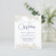 Rosa de botânico e floral Elegante e papel de design de orçamento de de folhagem Convite de Casamento com fonte de script e tema de cor azul de marinho. Personalize com os detalhes do seu dia especial.