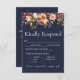 Cartão de resposta de casamento azul de marinho floral de outono moderno para seus convites de casamento, usado como cartão de cerimônia.