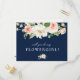 Cor azul marinho e belas aquarelas escamoteiam flores rosa. O texto e as cores podem ser personalizados.