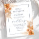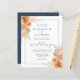 Os cantos deste romântico convite para o casamento de vassoura apresentam buquês florais secos por aquarela em tons de terra macia de laranja queimada, terracota, bege e marfim. O texto personalizável combina fontes de serif, itálico e script azuis do marinho com um retângulo azul do marinho em um fundo branco. O verso é um azul marinho sólido coordenador.