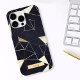 este caso apresenta um padrão geométrico de impressão metal-minimalista, azul-marinho-escuro e ouro-antigo metálico simulado, com caixa de ouro mais baixa e texto personalizável com letra sans serif minimalista fina