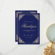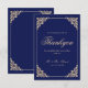 Cartões de agradecimentos de Casamento Muçulmano Islâmico. Um marinho azul elegante e real. Há um quadro de design de filigrana barroco em cor dourada. Os nomes, a data do casamento e todas as informações podem ser personalizados. Há um cartão extra incluso para que você possa adicionar texto também.