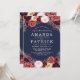 Marinho Marsala Peony Casais Invtions - apresenta um fundo azul marinho com várias colônias, rosas e outros elementos florais em tons de Marsala, burgundy, azul-rosa, cinzas e outros. Consulte a coleção correspondente nesta página para concluir a procura do evento.