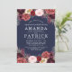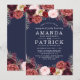 Marinho Marsala Peony Festa de noivado Invtions - apresenta um fundo azul marinho com várias colônias, rosas e outros elementos florais em tons de Marsala, burgundy, azul-rosa, cinzas e outros. Consulte a coleção correspondente nesta página para concluir a procura do evento.