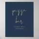 Esta placa de bar de pizza apresenta uma fonte seca escrita à mão e um design moderno minimalista com uma combinação moderna de cor azul e dourada do marinho. Altere facilmente as cores da fonte e a cor do plano de fundo para corresponder ao estilo do evento. Par com itens adicionais da coleção CAITLIN para uma aparência coesa.