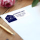 Moderno e moderno, mudamos a etiqueta do endereço. Apresenta as palavras 'Nós nos movemos' escritas em uma fonte moderna escrita à mão e san serif e colocadas dentro como uma moderna forma de marinho house. Personalize com seu nome e novo endereço.