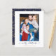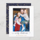 MARINHO ORÇAMENTAL Cartão Azul de Férias de Natal Simples com Script Simples Moderno e Simples, com as suas fotografias favoritas e um guião simples, mas elegante Saudações de Feliz Natal. O dorso é enfeitado com um padrão festivo, mas elegante, de folhas do estilo folha de ouro, pinheiro, e outro verde botânico de inverno em um fundo azul marinho de inverno. Perfeito para seus cartões de natal este ano! **O nosso documento sobre o ORÇAMENTO é menor, mais leve e mais delicado, mas ainda é bonito! Não se esqueça dos envelopes!** Se você precisar de ajuda ou itens correspondentes, entre em contato conosco em cedarandstring@gmail.com.