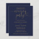 Este elegante convite de festas da noite de casamento do orçamento pode ser personalizado com seus detalhes de celebração em tipografia de ouro em um fundo azul marinho. Projetado por Thisnotme©