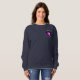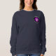 O logotipo oficial da FWAS impresso na camisola de um marinho feminino. Uma maneira colorida de mostrar seu apoio à Sociedade Astronômica Fort Worth!