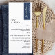 Porquê gastar cartões de lugar e cartões de menu quando pode ter um Menu elegante All-in-one personalizado com cada nome de convidado! Design contemporâneo, simples e elegante com uma bela caligrafia escrita à mão. Stripe no canto superior direito no tom azul do marinho com o nome do convidado em branco. De volta ao mesmo marinho azul que a faixa. Capacidade de alterar ambas as cores de distribuição ou vice-versa selecionando "personalizar mais". NOTA: adicione um nome de convidado a cada menu, adicione um menu no carrinho de compro; depois volte ao menu, adicione o segundo nome de convidado e adicione o menu para comprar o carrinho...continue com este processo com todos os nomes de convidados na sua lista. Para primeiros nomes de convidado curtos, adicione com a barra de espaço do teclado alguns "espaços" vazios antes do nome, para centralizá-lo melhor. Design disponível em uma variedade de opções de cores. Coordenando cartões de plano de assentos com nomes de convidados disponíveis.