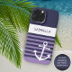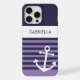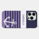 Simples âncora contemporânea da nave, em um padrão clássico e chic de faixas marinho azul e violeta púrpura. Com espaço para personalizar ou personalizar com um nome, iniciais ou monograma de sua escolha em um fundo de cor branca. Belo, moderno e legal cobrir para o motif motif motif motif motif motif motif, experiente e amante da arte, que quer proteger seu telefone de poeira e sujeira, visto e lágrimas. Este design está disponível no Apple iPhone 6, 7 e 8 Plus, 10 ou X, XR, XS, 11, 12, 13 Mini, 14, 15 Plus e no Pro Max Celphone capas. Mostre seu estilo, olhe a moda da moda e sinta na moda com um design único em um acessório de dispositivo móvel de sua escolha.