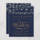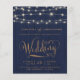 Apresentando nosso charmoso azul rústico e lanternas de cordas convite para casamento, elegantemente adornada com guião dourado. Esta design encantadora combina elementos rústicos com um toque de romance, que dá o tom para sua celebração de casamento encantadora.