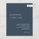 Um Convite de Casamento Azul Simples e Formal para Marinho Clássico de Orçamento com Monograma (noiva e iniciais de noivo) e foto.