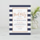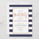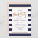 Convites modernos, de festa de formatura na moda, com folha de ouro falso rosa e faixas azuis marinho. A cor da faixa e a cor na parte traseira da placa podem ser personalizadas para qualquer cor que você quiser.