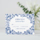 Cartão de resposta de RSVP de casamento com laurel marinho azul-aquarela azul Elegante.