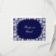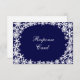 Delicar os flocos de neve em um padrão antigo em um fundo azul profundo, sotaque este RSVP coordenador para o Convite de Casamento de Lace de inverno do Marinho.