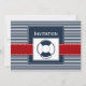 Listras marinhos, azuis e brancas, com borda vermelha e borda pontilhada branca, com um anel de vida, convites de casamento náuticos de Mod. Produtos correspondentes também disponíveis.