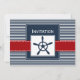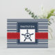 Listras marinhos, azuis e brancas, com bordas vermelhas e pontilhadas brancas, com um leme, convites de casamento náuticos de Mod. Produtos correspondentes também disponíveis