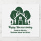 Esta etiqueta de champanhe da empresa imobiliária verde florestal é perfeitamente personalizada para um corretor especializado em casas perto da natureza selvagem ou das florestas. A silhueta branca de árvores atrás de uma cabana de madeira e personalizada com seu agente e nome comercial real para marketing no sertão.
