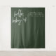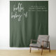 Esta tapeçaria moderna de chás de fraldas apresenta uma fonte escura, escrita à mão, com uma combinação de cores verde e branco da floresta. Seu design é o perfeito chá de fraldas para a mãe moderna. Edite facilmente a cor para corresponder ao seu tema.