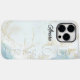 Capinha Personalizada de Mármore Azul Claro para iPhone 14 Pro Max – Detalhes em Dourado e 'AMOR' Sutil | Presente Elegante e Personalizado para Noiva, Nikah, Eid ou Aniversário.