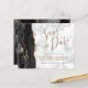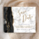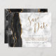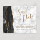 Este elegante casamento de orçamento salve o cartão de data apresenta uma borda preta de água agada, aparada com falso brilho de ouro. O texto personalizável combina um script de escrita manual preto e dourado, fontes copperplate e itálico em uma cinza e fundo de mármore branco. O verso apresenta um design de agate preto e dourado correspondente.