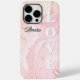Capa Personalizada Rosa Bege Mármore para iPhone 14 Pro Max – Detalhes Dourados e Fundo Sutil com ‘AMOR’ | Presente Elegante e Personalizado para Noiva, Eid, Aniversário, Dia das Mães e Mais.