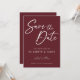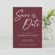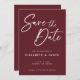 Antecedentes modernos com casamento no estilo branco de caligrafia Salve o cartão de convite de Data. Este design apresenta uma fonte de estilo de caligrafia grande que você pode mudar sua cor de branco para qualquer outra cor que quiser. Você também pode personalizar todos os detalhes e cores neste design Salvar a Data.