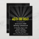 Bravo e divertido, preto e branco contemporâneo com convites de festas amarelo para festa de aniversário de 40 anos ou qualquer ano de aniversário. Preto com holofote de busca e design de texto marqueado. Personalize on-line com os detalhes do evento.