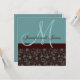 Convite de casamento "Floral Damask Blue Brown" por Elke Clarke ©2010. Mais designs disponíveis em WhiteWhimsicalWeddings.com e WhiteWhimsicalWeddings.blogspot.com. Personalize com seus nomes de monogramas e cores de casamento. Adicione todas as suas informações de casamento na parte de trás do cartão usando os prompts de menu fáceis de usar do Zazzle.