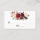 Marsala, burgundy e rosas vermelhas em estilo "boho" com penas e cartões de lugar chato verdes. Há também uma versão dobrada na coleção.