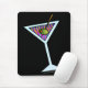 Um vidro brilhantemente colorido de martini enchido com um arco-íris ondulado do divertimento do cocktail e decorado com a azeitona clássica do cocktail em uma picareta de martini. Aperfeiçoe para toda a celebração do partido ou do happy hour.