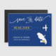 Você escolheu um lugar especial para o seu casamento. Agora é hora de celebrá-lo com este cartão de imã salve a data keepsasasasasasasasasak, com um mapa da silhueta e um pequeno avião indo para o seu destino. Para mover o coração para o lugar do seu casamento, clique em personalizar e, em seguida, "personalizar ainda mais".