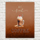 Esta poster apresenta uma deliciosa bebida ilustrada de café numa caneca de vidro alta com uma alça. A bebida é tocada com chantilly, cereja e palha listrada. Um fundo castanho com aparência texturizada complementa a imagem principal. Acima da bebida de café, o texto diz "Mas primeiro", escrito à mão, seguido da palavra "COFFEE", em caracteres ousados e decorativos. No geral, o poster transmite uma mensagem de priorização do café antes de qualquer outra coisa, capturando a essência de começar o dia em uma nota cafeinada. [8e5f90d712fc]