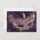 Máscara de máscara rsvp dourada brilho faíscas com aguarela roxa escura, uma máscara de mardi gras luxuosa desenhada à mão com diamantes dourados brilho confete. Perfeito para festa de aniversário, baile de máscaras ou casamentos.