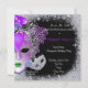 Bonito roxo e prata, Ornamentado, Mascarada, máscaras Mardi Gras enquadradas com brilho brilhante. A cor de fundo pode ser alterada para qualquer cor que você quiser. Convites maravilhosos para seus 16 anos, comemoração Mardi Gras ou qualquer dia especial. Personalize com suas informações de evento. Mude o texto para ler Quinceanera, Bat Mitzvah, 90, 100º, 60º ou qualquer aniversário de idade que esteja comemorando. TODOS OS ELEMENTOS DESIGN SÃO IMPRESSOS. SEM GELETOR OU GOLPE.