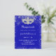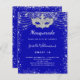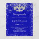 Para um Mascarada elegante, 16, 16 anos. Um fundo azul real. Decorado com pó falso prateado brilhante e uma máscara de mascarada. Personalize e adicione um nome, idade e detalhes da festa. O nome é escrito com um script de estilo manuscrito
