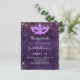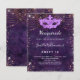 Para um Mascarada elegante, 16, 16 anos. Um padrão de fundo roxo. Decorado com rosa dourado falso poeira brilhante e uma máscara de mascarada. Personalize e adicione um nome, idade e detalhes da festa. O nome é escrito com um script de estilo manuscrito