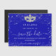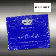 Uma Imã salve a data de tendências para uma festa de mascarada de 50 anos (ou qualquer idade). Um fundo azul real decorado com pó falso prateado brilhante e uma máscara de mascarada. Personalize e adicione uma data e nome/idade. O texto: Salvar a Data é gravado com um script de estilo com letra de tendência grande.