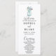 Este programa de casamento é a mistura perfeita de rústico e elegante. O fundo branco e a simples fonte de blocos pretos lhe dão um aspecto clássico, enquanto o pote de pedreiro rústico cheio de flores silvestres verdes, roxas, azuis e brancas e verde adiciona um toque de charme do país. Esta design é perfeita para casais que procuram por algo simples, mas romântico e rústico. A frente do programa apresenta os nomes dos casais, data do casamento, cidade e estado, juntamente com a ordem da cerimônia. O verso do programa enumera a festa de casamento, garantindo que todos sejam devidamente introduzidos nos convidados. O texto principal está em uma simples fonte de bloco preto, que é fácil de ler, enquanto as palavras Bem-vindo, Cerimônia e Festa de casamento são escritas em uma fonte bonito de script preto que adiciona um toque de elegância ao design. Os nomes dos casais são exibidos de forma destacada em uma fonte simples e em negrito, com espaçamento de letras usado para destacá-los. Isso acrescenta um toque pessoal ao programa e deixa claro de quem é o casamento. Quer você esteja tendo um casamento rústico ao ar livre, uma pequena cerimônia íntima ou um grande caso, este programa de casamento será o complemento perfeito para seu dia especial.