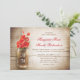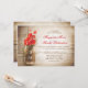 belos convites para casamentos russos com fundo de madeira em apuros e jarro de pedras com flores vermelhas escuras. Eu sugiro um belo papel de linho de textura para este design.