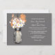 Perfeito para um casamento no estilo country ou talvez você apenas ame Mason Jars! Mason Jar pendurado num gancho cheio de flores selvagens do campo. Uma Legal Cinza de carvão contra o enforcamento de Mason Jar e flores silvestres em cores de margaridas laranja e branca. Se você tiver alguma dúvida sobre este design ou quiser uma mudança de cor, envie um e-mail para mim paula@labellarue.com Além disso, verifique se os Cartões SENTADOS RSVP, RECEPÇÃO e CONVIDADO correspondem!