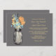 Perfeito para um casamento no estilo country ou talvez você apenas ame Mason Jars! Mason Jar pendurado num gancho cheio de flores selvagens do campo. Um fundo de Cinza de Slate contra o enforcado Mason Jar e flores silvestres em cores de azul claro, amarelos e laranja. Se você tiver alguma dúvida sobre este design ou quiser uma mudança de cor, envie um e-mail para mim paula@labellarue.com Além disso, verifique se os Cartões SENTADOS RSVP, RECEPÇÃO e CONVIDADO correspondem!