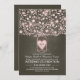 Bonito convite de casamento castanho-rústico com cheio de jarro de flores brancas - cor-de-rosa, folhas, ramos de árvores e corações amorosos brilhantes. Convidado casual perfeito para seu casamento rústico com jarras de pedras florais.