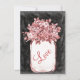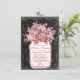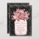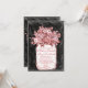 Mason Jar Flowers... Convites de casamento com um buquê de flores cor-de-rosa de salmão num pote de latas. O fundo é um design de quadro preto e branco. Este design de antiguidade em apuros tem um olhar desbotado vestido com um pote de latas vintage cheio de flores. O dorso tem o mesmo pote de mason e buquê de flor com a palavra "Love" em uma diagonal. O escrevendo é uma cor rosa de salmão coral, mas pode ser alterado para qualquer outra cor usando o botão Personalizar.