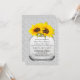 Trendy e chic, o convite de casamento rústico mostra Mason jar com lindos girassóis em cheio florado sobre fundo impresso de burlap. Totalmente personalizável, clique no botão Personalizar para alterar o tamanho, a cor e o estilo da fonte. Você também pode excluir, reorganizar ou adicionar mais texto para atender às suas necessidades.