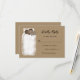 Cartão RSVP de casamento russo com um jarro de pedreiro e dois corações de burlap com iniciais contra um fundo de papel kraft falso. Personalize facilmente esta bela placa RSVP rustica online.