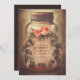 Convite russo para festa de noivado de campo com jarro pintado à mão e coroa floral. Design antigo e detalhes do estilo rústico - este convite é perfeito para a celebração do seu noivado no celeiro. Entre em contato para obter uma solicitação de cor personalizada.