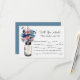 O cartão de RSVP LIB é perfeito para um casamento no estilo country ou talvez você apenas ame Mason Jars! Mason Jar pendurado num gancho cheio de flores selvagens do campo. Um fundo branco com o pendurado Mason Jar e flores silvestres em cores de azul Marinho, azul-fumo e rosa-goiaba. Se você tiver alguma dúvida sobre este design ou quiser uma mudança de cor, envie um e-mail para mim paula@labellarue.com Além disso, verifique se os Cartões SENTADOS RSVP, RECEPÇÃO e CONVIDADO correspondem!